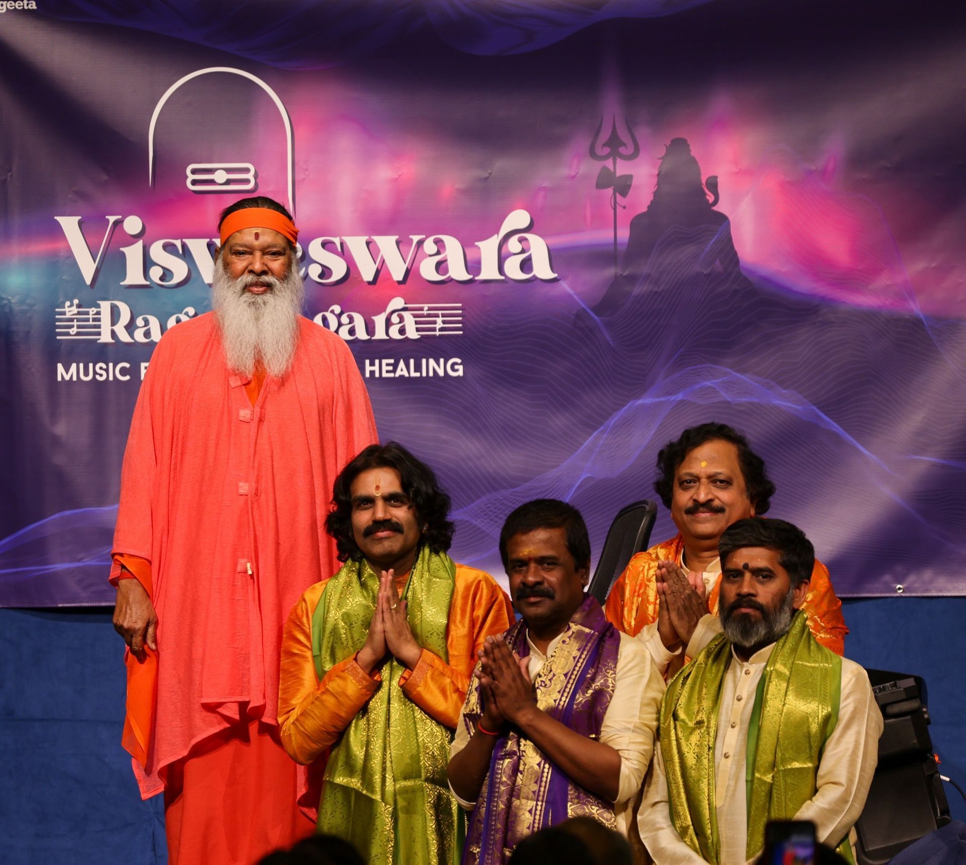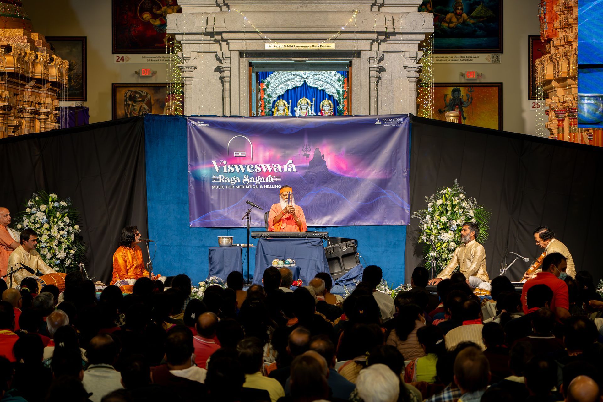 On Dec 9, 2023, Sri Swamiji conducted a healing and meditation concert at KSHT, Frisco, Texas, to a packed audience of 2000 people. The concert was named as “Visweswara Raga Sagara”.
