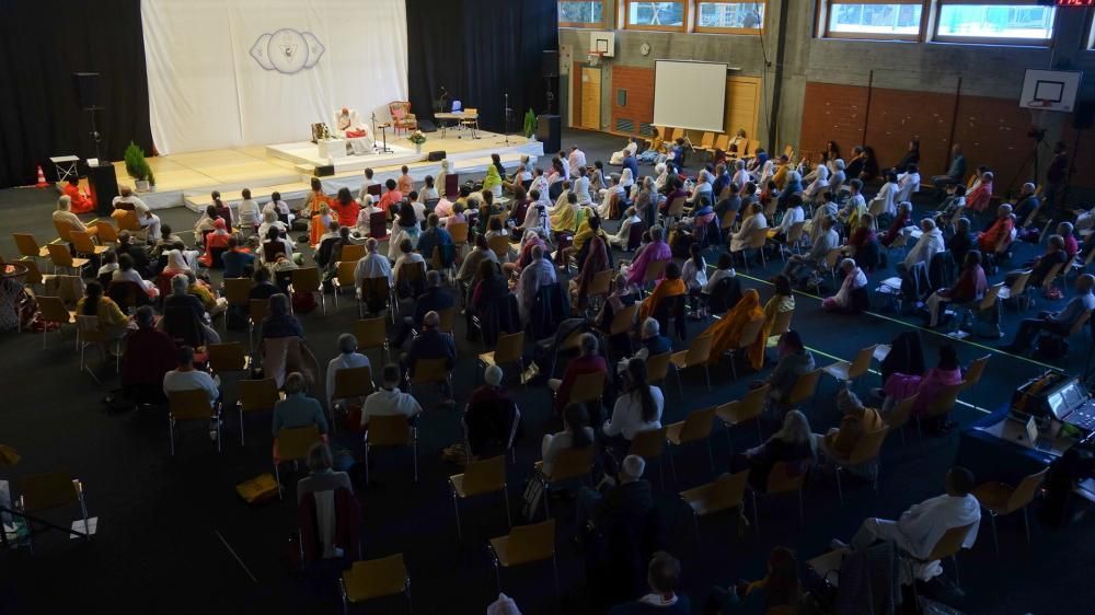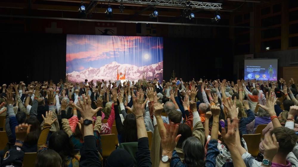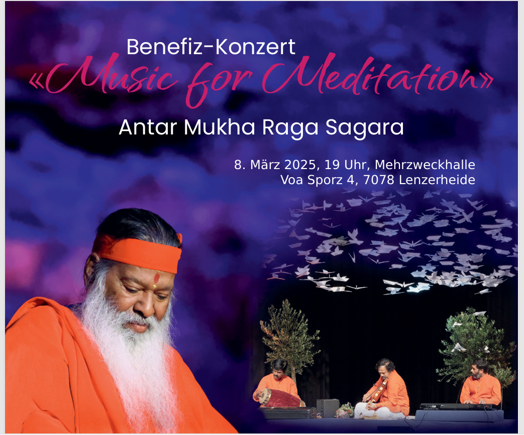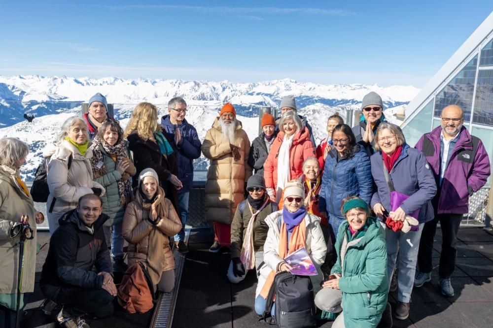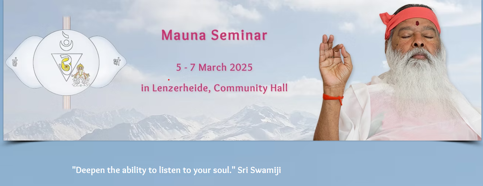 Pujya Sri Swamiji visited Lenzerheide, Switzerland, in March 2025 for a Mauna (Silence) seminar and the "Antarmukha Ragasagara" music meditation program. The seminar, organized by Datta Yoga Centre Switzerland with help from other European participants, focused on silence, mind control, and detachment, while the music program featured healing ragas performed by Sri Swamiji and accompanying musicians.