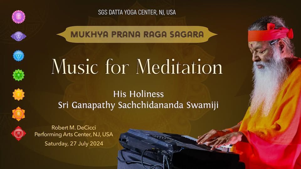 The "Music for Meditation" concert, held on July 27, 2024, at the Robert M. DeCicci Performing Arts Center in Voorhees Township, NJ, was organized by SGS Datta Yoga Center, USA. Featuring Pujya Sri Swamiji's "Mukhya Prana Raga Sagara," this event created an inspiring meditative atmosphere for attendees both in person and via livestream, promoting tranquility and mindfulness.
